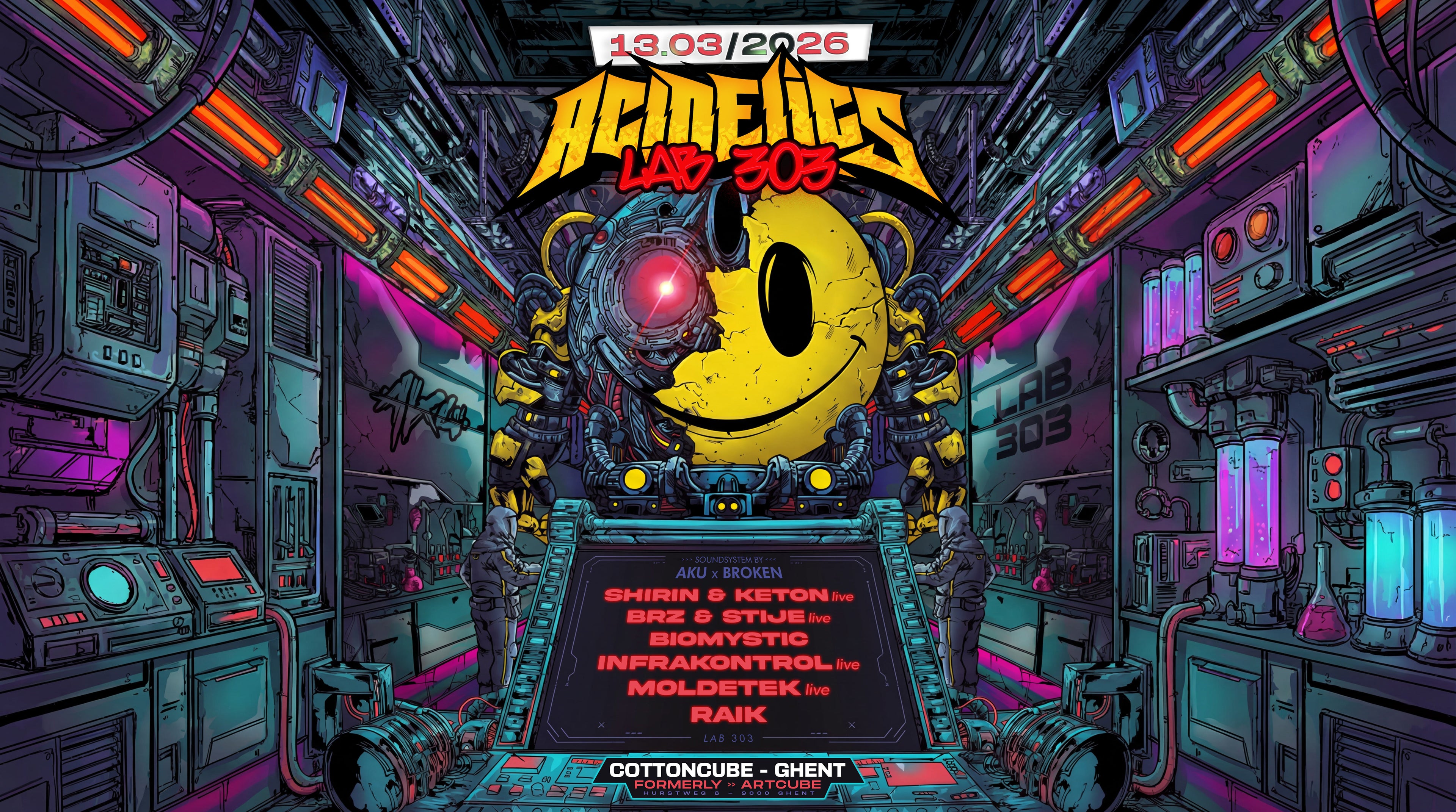 On 13 March 2026, LAB 303 takes over Cottoncube, Ghent (formerly Artcube) for a carefully curated night guided by the source of the 303. Expect acid-driven sound, a new spatial setup, and a collaborative soundsystem experiment — tuned specifically for this space.